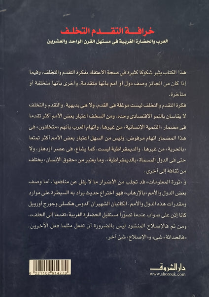 فكرة التقدم والتخلف ليست موغلة في القدم، ولا هي بديهية، والتقدم والتخلف لا يقاسان بالنمو الاقتصادي وحده. ومن السخف اعتبار بعض الأمم أكثر تقدما في مضمار «التنمية الإنسانية» من غيرها، واتهام العرب بأنهم «متخلفون» في هذا المضمار اتهام مرفوض. وليس من السهل اعتبار بعض الأمم أكثر تمتعا «بالحرية» من غيرها. والديمقراطية ليست، كما يشاع، في عصر ازدهار، ولا حتي في الدول المسماة «بالديمقراطية»، وما يعتبر من «حقوق الإنسان» يختلف من ثقافة إلي أخري.